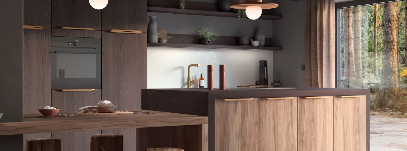 En 2025, les cuisines s'affirment comme des espaces où la nature inspire chaque détail. Les matériaux bruts, associés à des teintes sombres et élégantes, créent une ambiance sophistiquée et chaleureuse.
