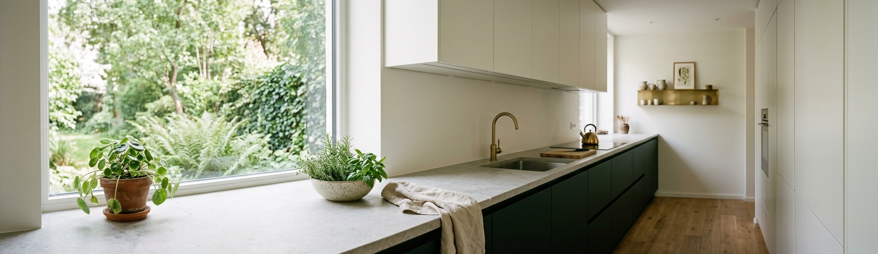 Biophilic, Japandi, cuisine ouverte sur jardin |